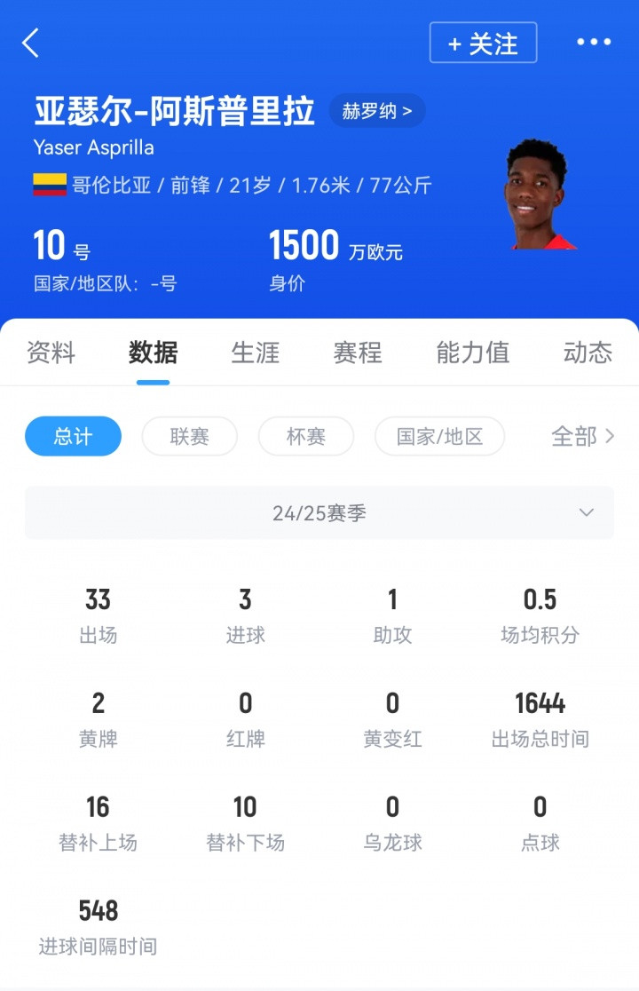 哥伦比亚进攻中场阿斯普里拉去年夏天从沃特福德转会至赫罗纳,当时俱乐部正在组建其有史以来的首支欧冠阵容。