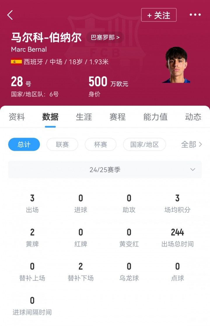 样本量虽小,但每90分钟2.2次成功抢断若无伤病将位列全队第一。巴萨上赛季在转换防守中挣扎,伯纳尔的存在可能是他们缺失的防线与进攻之间的纽带。