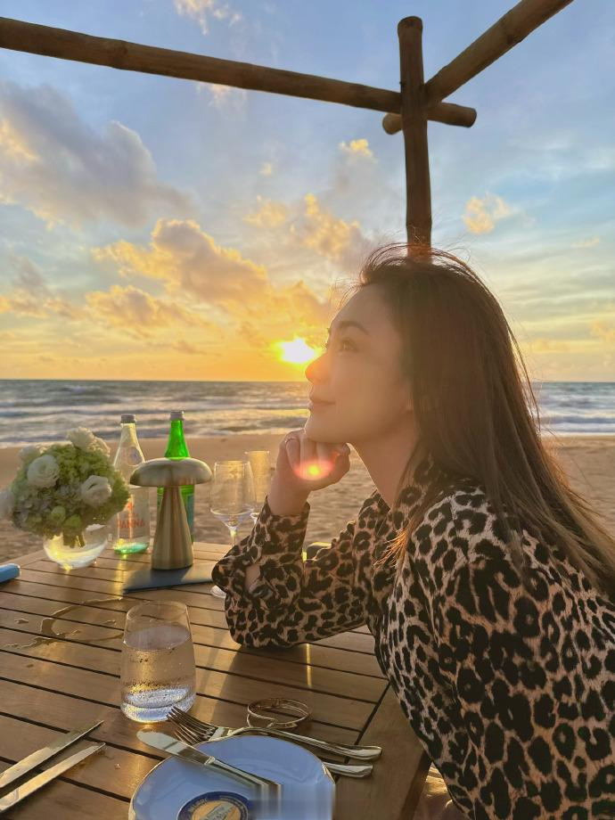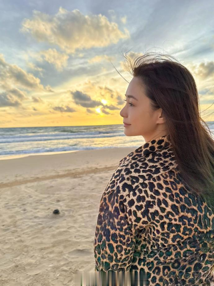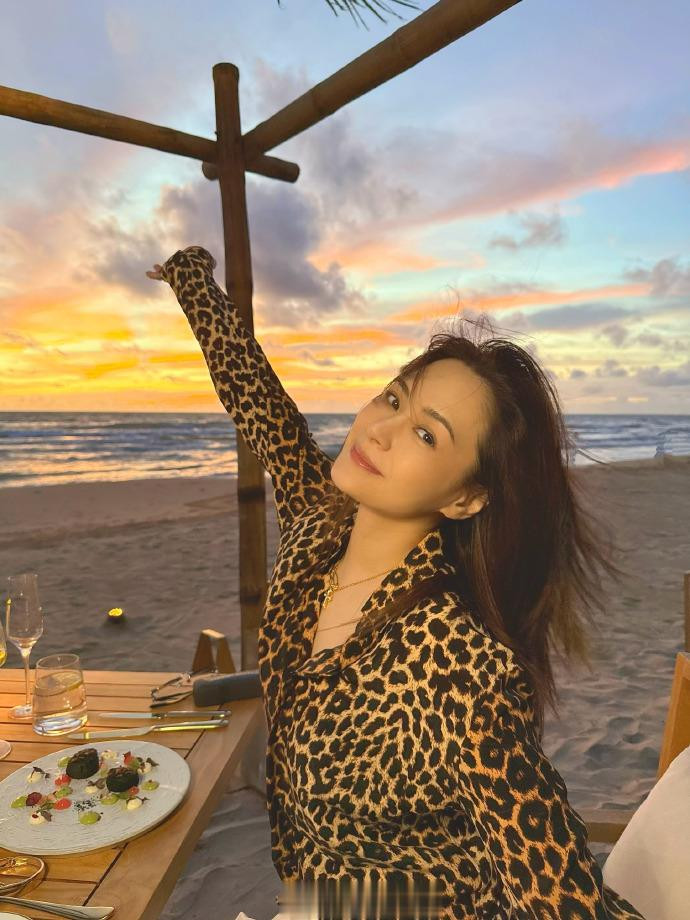 阿娇还穿上了豹纹look在海边就餐,她开心给大家展示海边的美景,转头甜笑的样子实在是美得不得了。