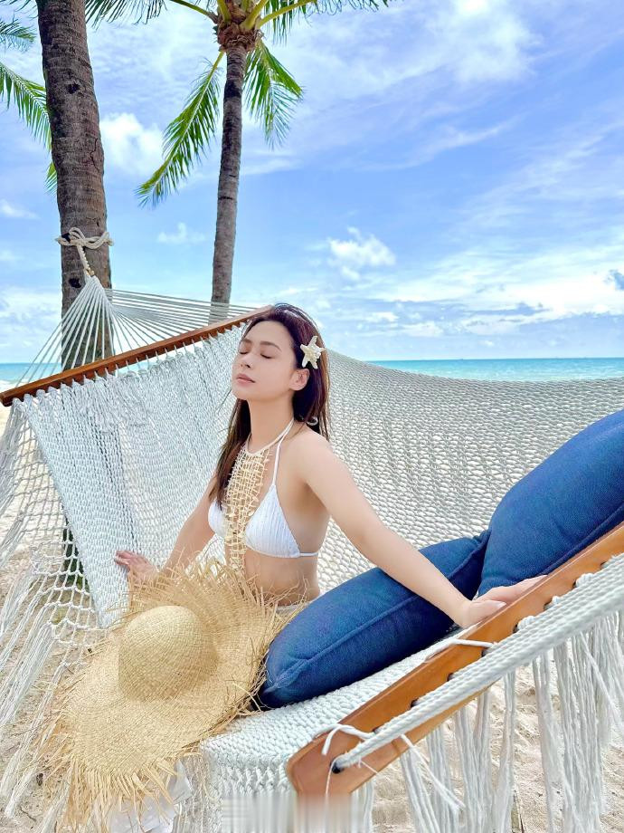 44岁阿娇晒旅行照, 穿泳装身材零赘肉, 又瘦又美状态太绝了