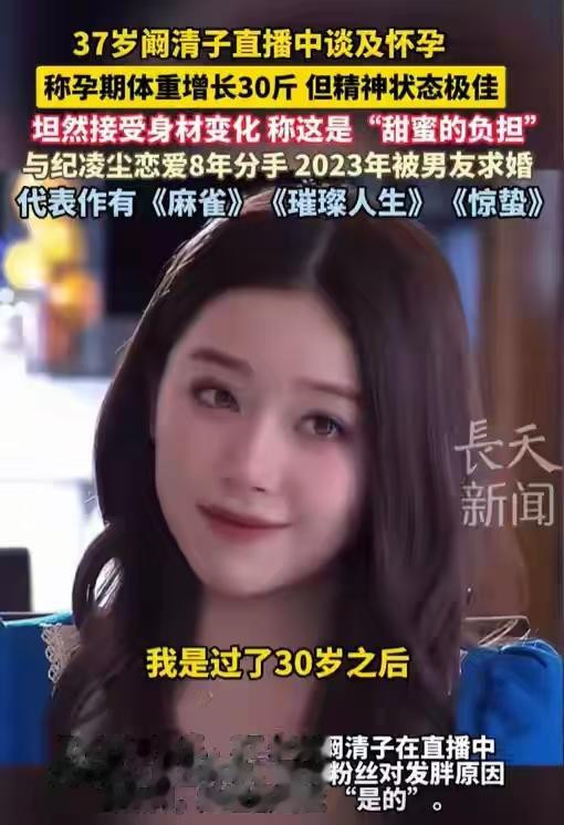7月23号阚清子直播时被人说身材变化,阚清子直接承认怀孕了,这事儿一出,网友们纷纷送上祝福。