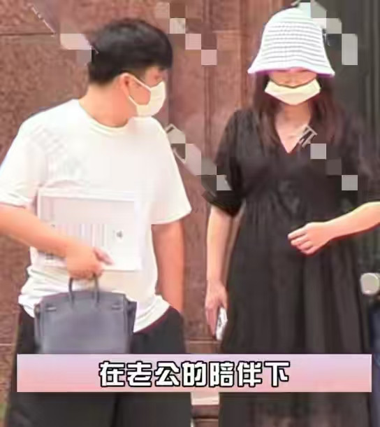 阚清子当天身穿一件黑色连衣裙,头戴白色遮阳帽,能够看出她的身材有点臃肿。两人行至医院门口时,阚清子扶着肚子低头,其老公在旁帮忙提包,一直关注她的状态。