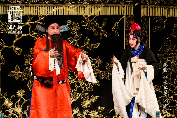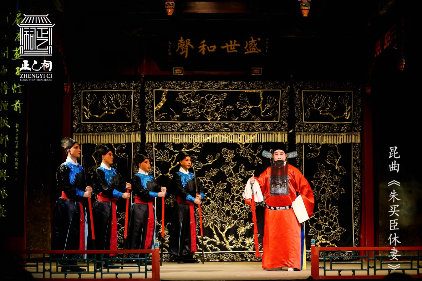 在他们的演绎下,朱买臣与崔氏不再只是剧本里的“两个角色”,而是成为了实实在在、可以引起观众共鸣和思考的“身边人”,当他们在戏台上唱起水磨调,当《朱买臣休妻》的剧情在此铺展,崔氏的无奈、朱买臣的怅惘仿佛跃出了纸面,与戏楼的历史底蕴相互激荡——三百年间,无数人间悲欢曾在此上演,古今观众的情感在正乙祠戏楼同频共振,让“生存与尊严”“旧情与命运”的永恒命题有了穿越时空的生命力。