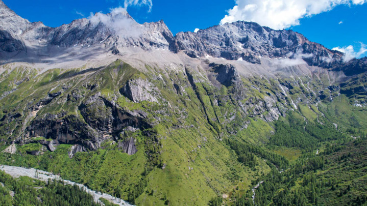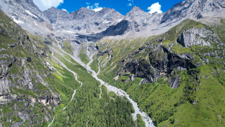 ↑2025年9月13日在四川省阿坝藏族羌族自治州小金县拍摄的四姑娘山景区风光。(无人机照片)CICPHOTO/文瑞 摄